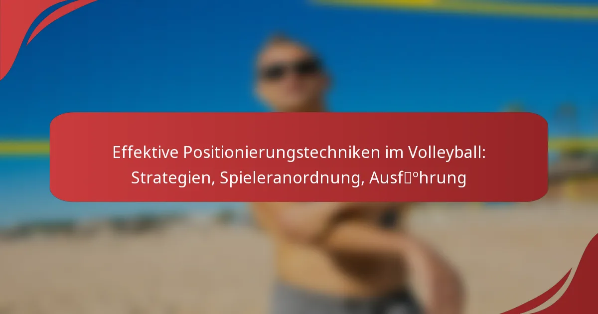 Effektive Positionierungstechniken im Volleyball sind entscheidend für die Verbesserung der Teamleistung und den Erfolg auf dem Spielfeld. Durch die strategische Ausrichtung der Spieler basierend auf ihren Rollen und Formationen können Teams ihre offensiven und defensiven Fähigkeiten optimieren. Das Verständnis dieser Techniken ermöglicht es den Spielern, Spielzüge vorherzusehen und Bewegungen präzise auszuführen, was eine umfassende Abdeckung und Koordination während der Spiele gewährleistet.