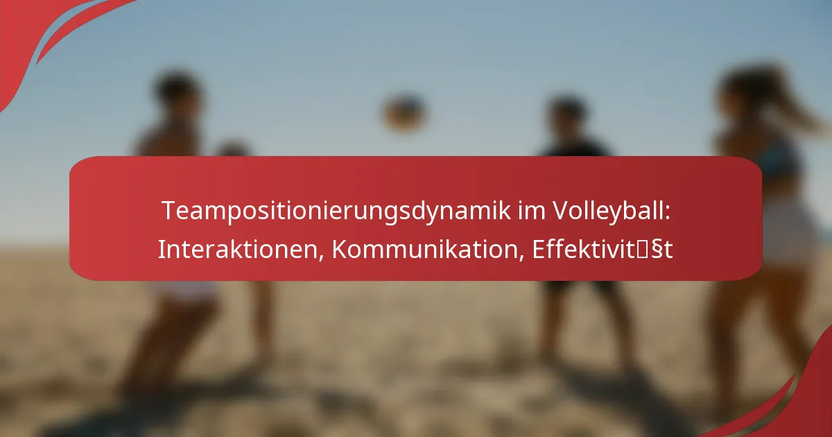 Die wichtigsten Interaktionen in der Teampositionierung im Volleyball beinhalten effektive Kommunikation, sowohl verbal als auch non-verbal, zwischen den Spielern, um eine optimale Platzierung und Bewegung auf dem Feld sicherzustellen. Diese Interaktionen verbessern das Situationsbewusstsein und fördern starke Beziehungen, die entscheidend für die Aufrechterhaltung der Teamwirksamkeit während des Spiels sind.